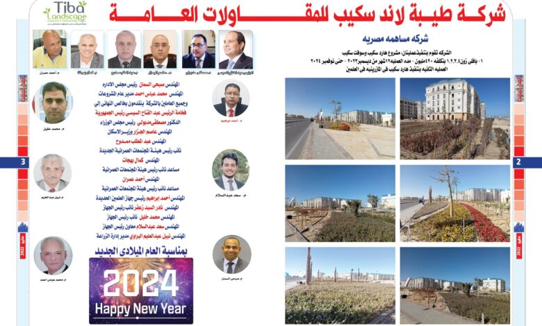 شركة طيبة لاند سكيب للمقاولات العامه تهنئ مسئولوا الإسكان وجهاز مدينة العلمين بمناسبة العام الجديد