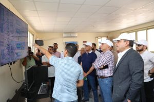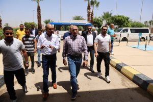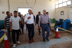 وبعدها تم التوجه إلى محطة معالجة الصرف الصحي بطاقة تصميمية 29 ألف م3 / يوم حيث قام سيادته بالمرور على مراحل المحطة المختلفة والاطلاع على تعليمات التشغيل وإرشادات السلامة والصحة المهنية بالمحطة .