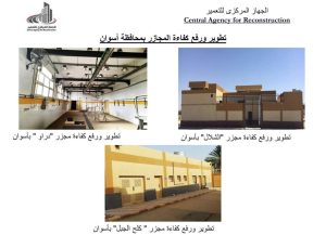 وقال اللواء أحمد الحفناوي، رئيس جهاز تعمير جنوب الصعيد، إنه جار الانتهاء من مشروع تطوير ورفع كفاءة 3 مجازر (الشلال – دراو – كلح الجبل)، بتمويل من وزارة التنمية المحلية، بالإضافة إلى الانتهاء من تنفيذ مجمعين صناعيين (بلانة/مركز نصر النوبة – الرمادى قبلى/مركز ادفو)، بتمويل من هيئة تنمية الصعيد، وإنشاء وتطوير عدد من الحضانات، بتمويل من وزارة التضامن الاجتماعي.