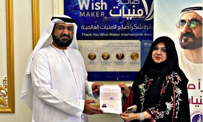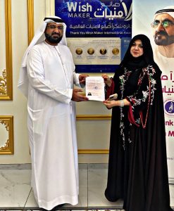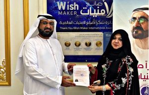 منح مركز أمنيات لأصحاب الهمم مصممة الأزياء العالمية منى المنصوري لقب سفيرة الأمنيات وجواز السفر الفخري جنسيتي إنسان الذي يمنح للذين يحملون في قلوبهم محبة لأصحابَ الهمم، ولهم دور ايجابي في المجتمع ويسهمون بإنسانيتهم في بناء مجتمع أفضل لدولة الإمارات العربية المتحدة .