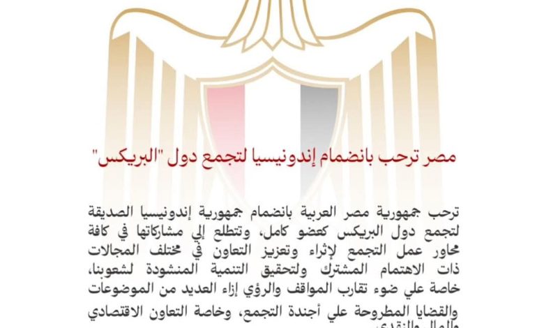مصر ترحب بانضمام إندونيسيا لتجمع دول “البريكس”