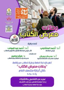 تحت رعاية الدكتور أحمد المنشاوي رئيس الجامعة وذلك في دورته الـ ٥٦ تحت شعار” نصنع المعرفة…نصون الكلمة ” خلال إجازة منتصف العام الجامعي ٢٠٢٤-٢٠٢٥م، وذلك تحت إشراف الدكتور أحمد عبد المولى نائب رئيس الجامعة لشئون التعليم والطلاب.