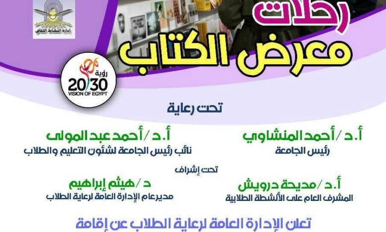 تنظم جامعة أسيوط.. (٤) رحلات طلابية لزيارة معرض القاهرة الدولي للكتاب وذلك