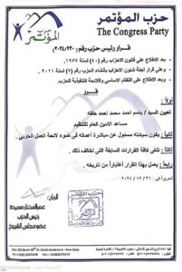رئيس حزب المؤتمر: تعيين باسم حلقة مساعد الامين العام وامين التنظيم