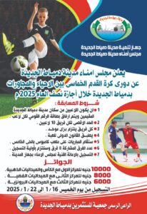 أضاف رئيس مجلس الأمناء، أنه في ضوء توجيهات فخامة الرئيس عبدالفتاح السيسي رئيس الجمهورية، برعاية الشباب والإهتمام والعنايةبالصحة العامة، وغرس وترسيخ المفاهيم الصحيحة للنشاط الرياضى،ونشر الوعي والثقافة الرياضية بين الشباب، وتعزيز قيم التنافس الشريف، وبناء صداقات وعلاقات إجتماعية بين الشباب، ستشمل تلك الفاعليات تنظيم بطولة لكرة القدم الخماسية بين شباب المدينة، على ملعب “أكاديمية كامبوس” بالحى الخامس بالمدينة، تتضمن “ثمانية فرق” بأسبقية التسجيل بالأمانة الفنية للمجلس بمقرالجهاز خلال الفترةمن 16 يناير حتى22 يناير الجارى ،يشترط أن يكون للاعبين الراغبين في المشاركة محل إقامة بمدينة دمياط الجديدة مثبت ببطاقة الرقم القومي، وبحد أقصى “عشرة لاعبين”لكل فريق، ويطبق القانون الدولى للعبة…مضيفا أن المجلس رصد مكافأت وجوائز مادية وعينية لأصحاب المراكز الثلاثة الأولى والمميزين بالبطولة.
