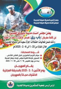وفى السياق ذاته، وضمن فعاليات إحتفالية ” إجازة سعيدة فى دمياط الجديدة “، أعلن رئيس مجلس الأمناء عن تنظيم مهرجان “باب رزق ” لعرض الأكلات ومهارات الطبخ، وذلك يوم الإثنين الموافق 3 فبراير المقبل بالحديقة المركزية بالمدينة، موضحا أن الإشتراك بالمهرجان مجانا، والتسجيل بالأمانة الفنية للمجلس بمقر الجهاز خلال الفترة من 16 حتى 30 يناير الجارى، وأنه سيتم تكريم المتميزين خلال الحفل الختامي للفاعليات.