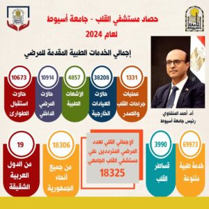 رئيس جامعة أسيوط يعلن بالأرقام عن الحصاد السنوي لمستشفى القلب الجامعي لعام ٢٠٢٤م