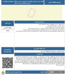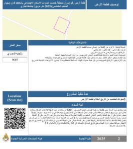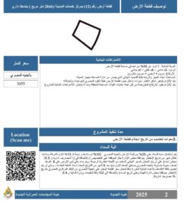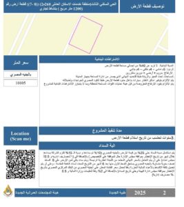 ٢- قطعة أرض رقم ( ٧ – ٨ ) بمساحة ١٢٠٠ م٢ بنشاط تجارى بمنطقة خدمات الاسكان العائلى ٢٦٠ م٢ بالحي السكني الثالث .