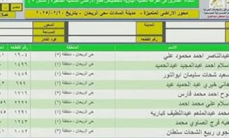 وكذلك أيضا قطع الأراضي السكنية الصغيرة “مسكن”، والتي تم التقدم عليها خلال الفترة من يوم 7/11/2024 حتى 6/1/2025، وذلك اعتباراً من يوم 8/2/2025، وحتى يوم 26/2/2025، في أيامٍ محددة.