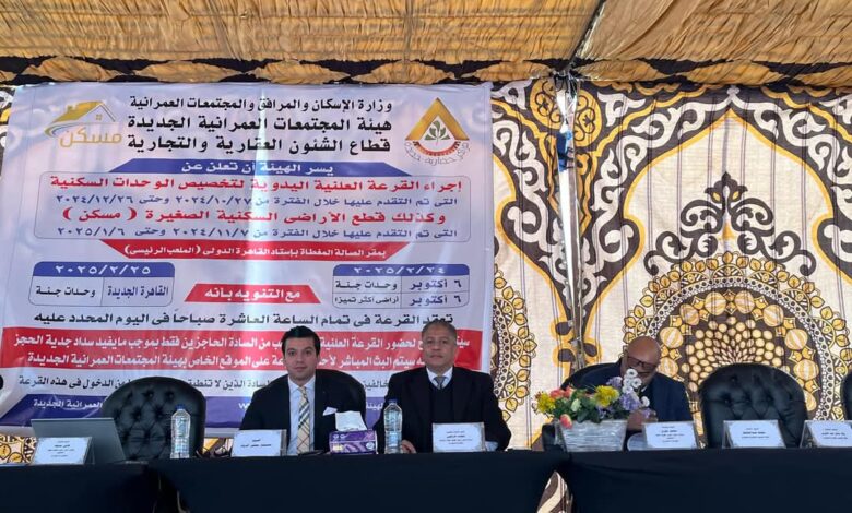 وأضاف “الشوربجي”، بالنسبة للقرعة العلنية لوحدات جنة بمدينة القاهرة الجديدة، سيتم إجراؤها بمقر إستاد القاهرة الدولي (الملعب الرئيسي) اليوم 25/2/2025، والأراضي المتوسطة بمدينة برج العرب الجديدة، غدا 26/2/2025.