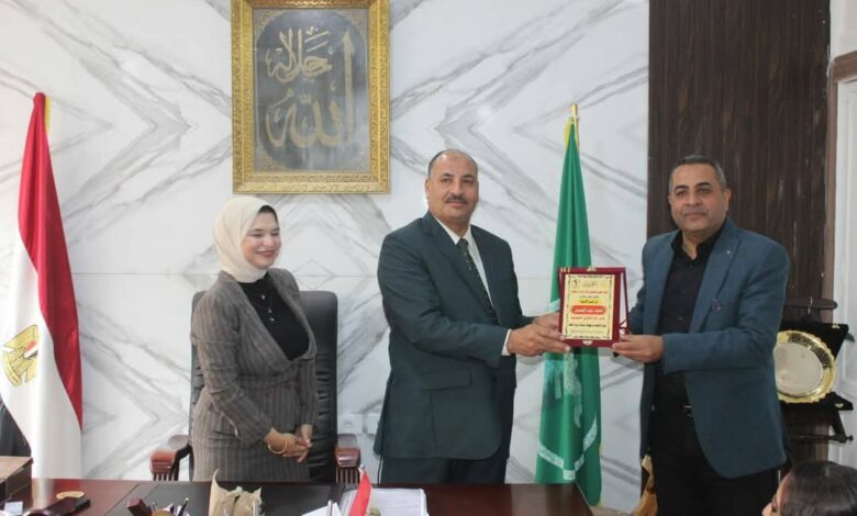 والاستاذ محسن عبدالعال بإدارة ابوقرقاص و تكريم المتطوعين الأكثر نشاطًا والأكثر تميزًا خلال عمل البرنامج بالمدارس، تقديرًا لجهودهم الفعالة في نشر الوعي بين الطلاب والمساهمة في تنفيذ المبادرات التوعوية التي أطلقها الصندوق.