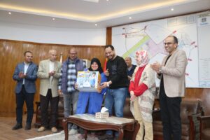 حضر الاحتفالية، عادل المحمدى ، رانيا سمير، حسام حسنى، احمد مكى، راضى خليل نواب رئيس الجهاز ، عرفات سمير مدير عام الماليه، صلاح شحاته مدير إدارة العلاقات العامة والساده مديرى الإدارات والحضور الكريم