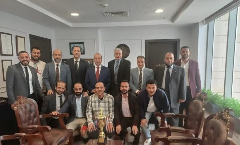 نصار يكرم فريق كرة القدم بالجهاز المركزي للتعمير بعد فوزه بالدورة الرمضانيه للعاملين بالاسكان