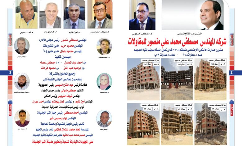 شركة المهندس مصطفي محمد علي منصور للمقاولات تشكر مسئولوا الإسكان وجهاز مدينة المنيا الجديده