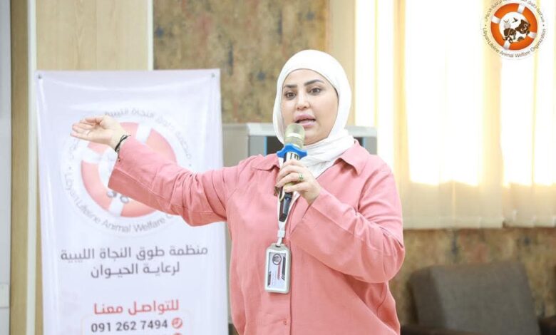 “الرفق بالحيوان مسؤولية إنسانية ومجتمعية”، وكانت بتنظيم منظمة طوق النجاة الليبية لرعاية الحيوان، وبالتعاون مع الجامعة الليبية الدولية.