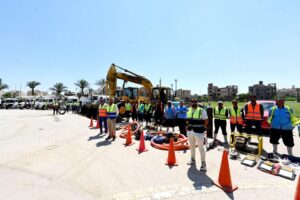 عقب ذلك شهد وزير الإسكان اصطفافاً لمعدات التشغيل والصيانة الخاصة بجهاز مدينة 6 أكتوبر والتي تبلغ 67 معِّدة متنوعة بين سيارات (كباش – مدمج – نافوري – سيول – سيارة كسح – ري زراعات – لوادر – جرارات) وغير ذلك، موجها في هذا الصدد بالاهتمام بالصيانة الدورية للمعدات ومراعاة عوامل الأمن والسلامة خلال عمليات الصيانة التي يجري العمل بها، والتحرك الفوري للتعامل مع أي طارئ قد يحدث.