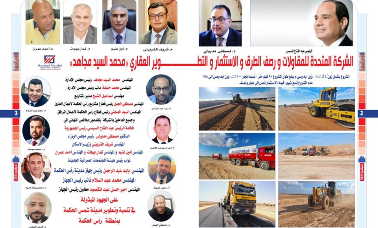 الشركة المتحدة للمقاولات ورصف الطرق والاستثمار والتطوير العقاري “محمد السيد مجاهد” تشكر مسئولوا الإسكان وجهاز مدينة رأس الحكمة