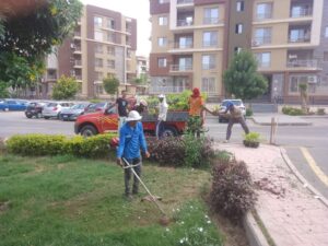 تفقد المهندس بسام محمد رئيس مدينة الشروق أعمال صيانة المسطحات الخضراء في كومبوند جنة، مع التركيز على تحسين مستوى الزراعة ورفع الكفاءة.