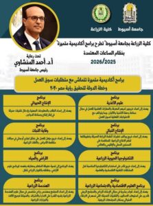 وأضاف أن هذه البرامج تمثل نقلة نوعية في مسيرة كلية الزراعة بجامعة أسيوط، حيث تفتح أمام الطلاب آفاقًا للتعلم والتطبيق، وتؤهلهم لمواجهة تحديات سوق العمل، بما يحقق رسالة الجامعة في خدمة المجتمع وتنمية البيئة.