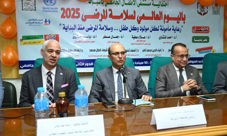 تحت شعار “رعاية مأمونة لكل مولود وكل طفل ـ سلامة المرضى منذ البداية”..مستشفى الاطفال الجامعي بأسيوط تحتفل باليوم العالمى لسلامة المرضى