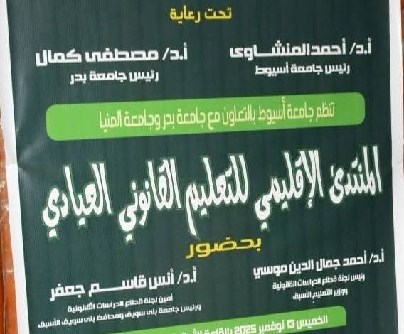 المنتدى الإقليمي الأول للتعليم القانوني العيادي بجامعة بدر بأسيوط يختتم فعالياته. (صور)