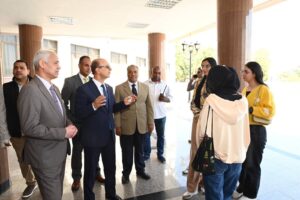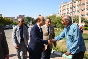 رافق رئيس الجامعة خلال جولته كلٌّ من الدكتور أحمد عبد المولى، نائب رئيس الجامعة لشئون التعليم والطلاب، والأستاذ طاهر حسن، رئيس الإدارة المركزية لمكتب رئيس الجامعة، والأستاذ غريب خيري، مدير عام الإدارة العامة للعلاقات العامة والإعلام.