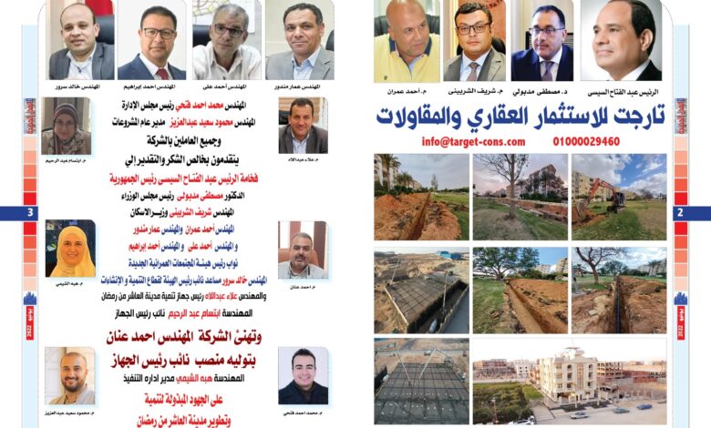 شركة تارجت للاستثمار العقاري والمقاولات تشكر مسئولوا الإسكان وجهاز مدينة العاشر من رمضان