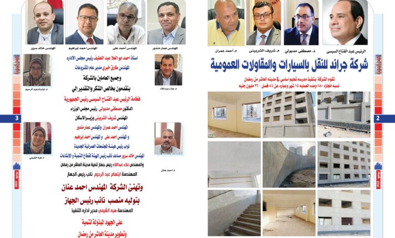 شركة جراند للنقل بالسيارات والمقاولات العمومية تشكر مسئولوا الإسكان وجهاز مدينة العاشر من رمضان