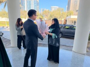 بحثت المصممة العالمية الإماراتية منى المنصوري مع راوان جومابيك سفير كازاخستان بالإمارات سبل دعم وتعزيز التعاون والتبادل الثقافي وتمكين المواهب الشابة في مجال الموضة والأزياء ومنحها الفرصة لتقديم إبداعاتها في المحافل الخاصة بالموضة من اجل تقوية الروابط الإنسانية بين الإمارات وكازاخستان.