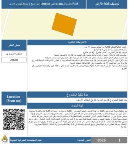 • قطعة أرض رقم (138) – منطقة الخدمات الإقليمية