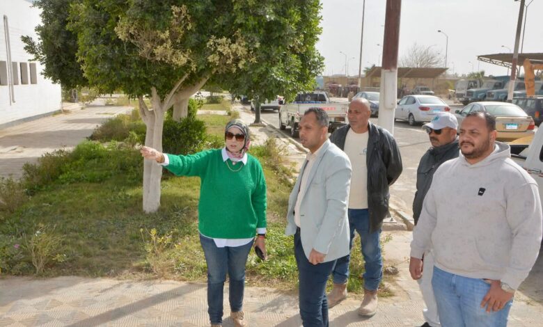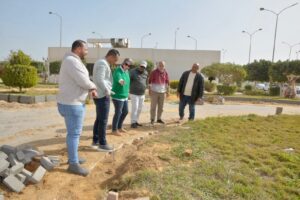 رئيس مدينة السويس الجديدة تتفقد أعمال صيانة المحاور المرورية وتنسيق المسطحات الخضراء