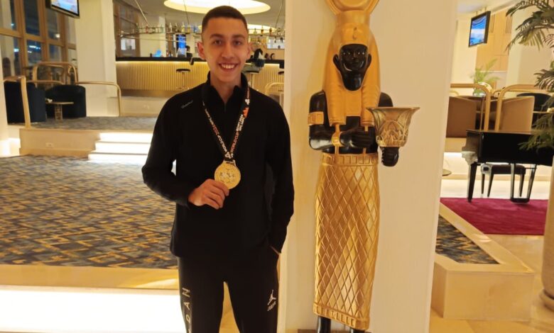 نور أشرف صبحي بطل بطولة كأس العالم للقوة البدنية المقامة بالقاهرة