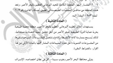 حنان بدوى أصدر رئيس مجلس الوزراء الدكتور مصطفى مدبولي قرارًا رقم ٤٤١٩ لسنة ٢٠٢٥، يقضي بإضافة مساحات بحرية جديدة للحيد…